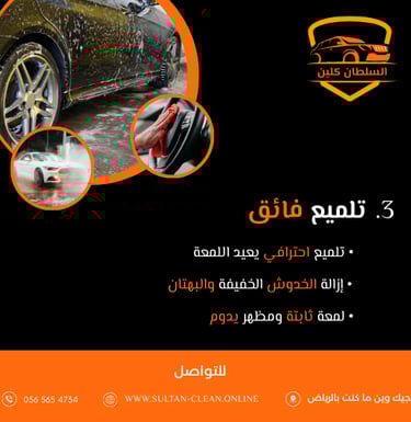 في السلطان كلين نقدّم عناية متكاملة للسيارات بمعايير عالية الجودة، مع تقنيات حديثة تضمن نظافة مثالية ولمعة تدوم. لأن سيارتك تمثل قيمة خاصة، نحرص على حمايتها وإبراز فخامتها بأدق التفاصيل.